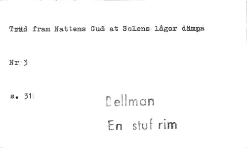 //// Träd fram Nattens Gudi at SoLens lågor dämpa //// Nr 3 //// s. 31i //// En stu( rim