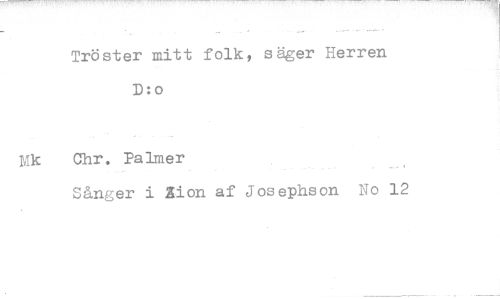 //// Tröst er mitt folk, säger Herren D:o //// Chr. Palmer //// Sånger i 2ion af Josephson No 12