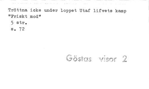 //// Tröttna icke under loppet Utaf lifvets kamp "Friskt mod" //// 5 str. s. 72 //// Gösfas 2