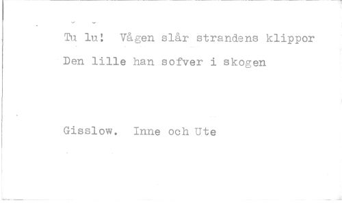 //// Tu lu! Vågen slår strandens klippor Den lille han sofver i skogen //// Gisslow, Inne och Ute