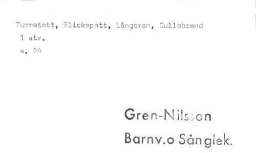 //// Tummetott, Slickepott, //// 1 str. s. 84 //// Långeman, Gullebrand //// Gren-Ni!s:cn Barnv.o Sång!