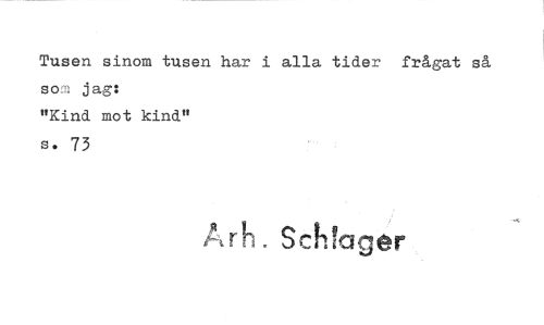 //// Tusen sinom tusen har i alla tider som jag: //// "Kind mot kind" s. 73 //// frågat så //// Arh. ScMager