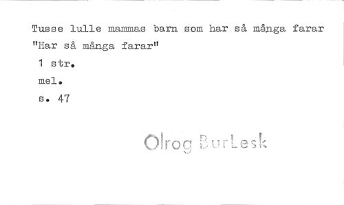 //// Tusse lulle mammas bam som har så många farar "Har så många farar" //// 1 str. mel. s. 47 //// Otro Q BurLask