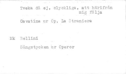 //// Tveka då ej, olyckliga, att härifrån //// mig följa //// Cavatina ur Op. Ia Straniera Bellini //// Sångstycken ur Operor