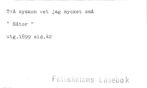 //// Två syskon vet jag mycket små " Gåtor " utg.1899 sid.42 //// Pedhskoians Läsebok
