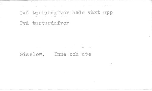 //// Två turturdufvor hade växt upp Två turturdufvor //// Gisslow. Inne och ute