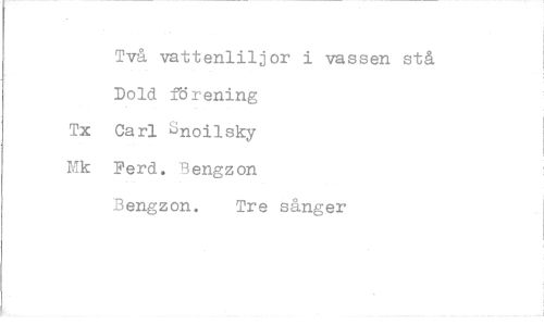 //// Två vattenliljor i vassen stå Dold förening Tx Carl Snoilsky Mk Ferd. Bengzon //// Bengzon. Tre sånger