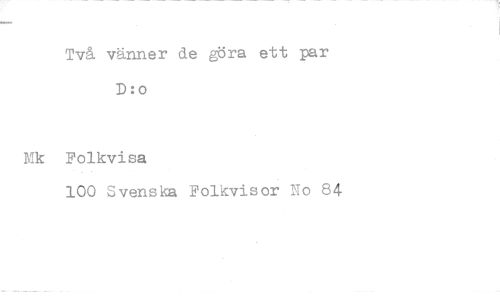 //// Två vänner de göra ett par D:o //// Folkvisa //// 100 Svenska Folkvisor No 84