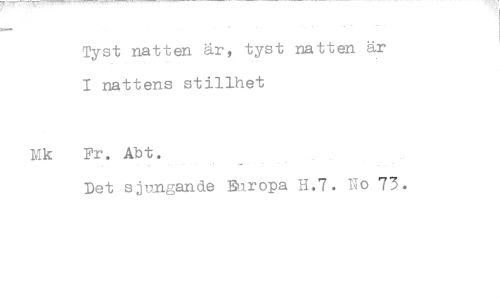 //// Tyst natten är, tyst natten är I nattens stillhet //// Fr. Abt. //// Det sjungande Europa H.7. No 73.