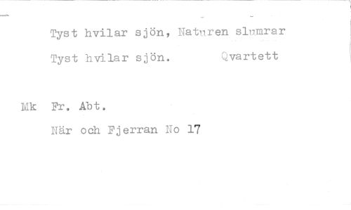 //// Tyst hvilar sjön, Naturen slumrar //// Tyst hvilar sjön. Qvartett //// Fr. Abt. //// När och Fjerran No 17