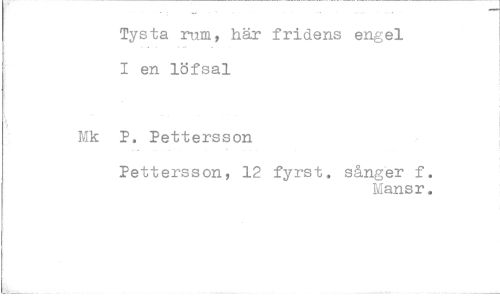 //// Tysta rum, här I en löfsal //// P, Pettersson Pettersson, 12 //// fridens engel //// fyrst, sånger f Mansr