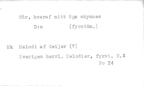 //// Tår, hvaraf mitt öga skymmes D:o (fyrstäm.) //// Mk Melodi af Geijer (?) //// Sveriges herrl. Melodier, fyrst. H.4 //// No 24