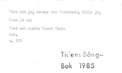 //// Tänk att jag dansar med Andersson, lilla jag Rosa på bal //// Text och musik: Evert Taubs //// mel. //// s. 232 //// licens Sång-