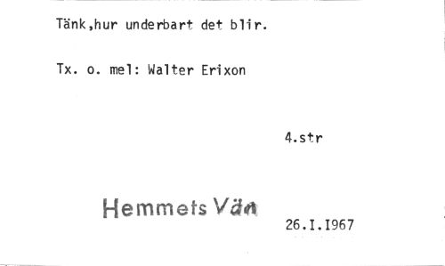 //// Tänk,hur underbart det blir Tx. o. mel: Malter Erixon //// Hemmets //// 4.str //// 26.1.1967