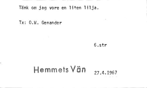 //// Tänk om jag vore en liten lilja. Tx: O.M. Genander //// 6.str //// Hemmets van 2?.4.t967