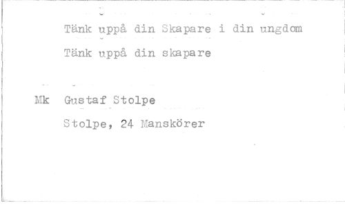 //// Tänk uppå din Skapare i din ungdom Tänk uppå din skapare //// Gustaf Stolpe Stolpe, 24 Manskörer