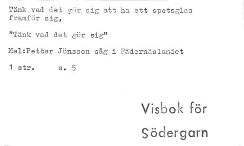 //// Tänk vad det gör sig att ha ett spetsglas framför sig, //// "Tänk vad det gör sig" //// Mel:Petter Jönsson såg i Fädernäslandet 1 str. s. 5 //// Visbok för Södergarn