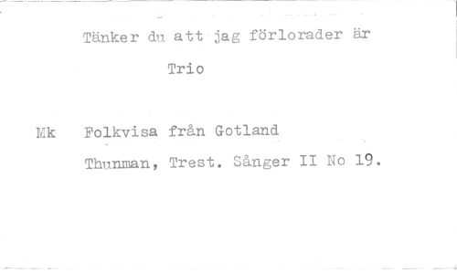 //// Tänker du att jag förlorader är Trio //// Folkvisa från Gotland Thunman, Trest. Sånger II No 19.