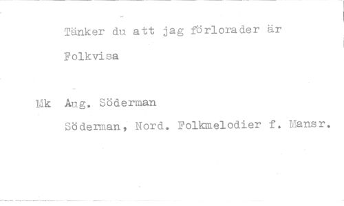 //// Tänker du att jag förlorader är //// Folkvisa //// Aug. Söderman //// Söderman, Nord. Folkmelodier f. Mans