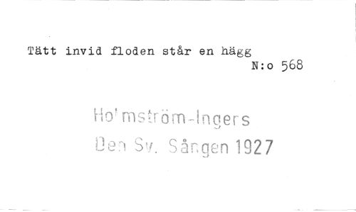 //// Tätt invid floden står en hägg //// N:o 568 //// Ho' mström-incer //// e.i b'?. //// Q //// år.aen 1927