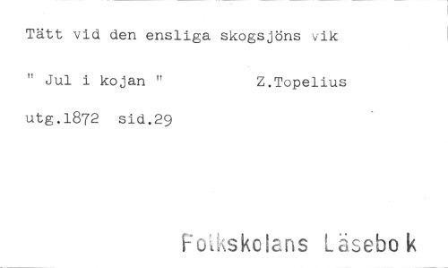 //// Tätt vid den ensliga skogsjöns vik //// " Jul i kojan " Z.Topelius //// utg.1872 sid.29 //// Mkskoians Läsebok