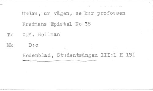 //// Undan, ur vägen, se hur profossen Fredmans Epistel No 38 Tx C.M. Bellman Mk D:o //// Hedenblad, Studentsången 111:1 H //// 151