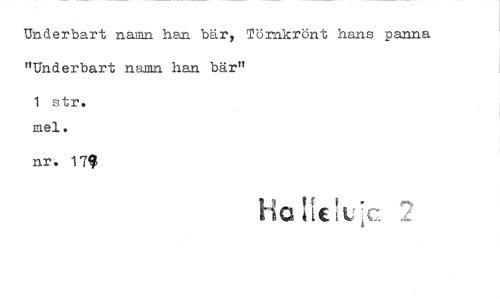 //// Underbart namn han bär, Tömkrönt hans panna //// "Underbart namn han bär" //// 1 str. mel. //// nr. 17$