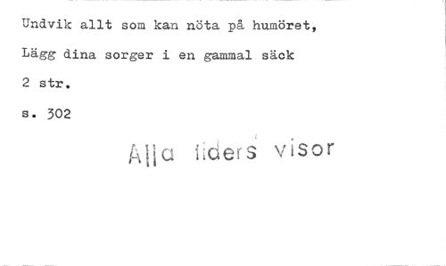//// Undvik allt som kan nöta på humöret, Lägg dina sorger i en gammal säck //// 2 str. s. 302 //// itders visor