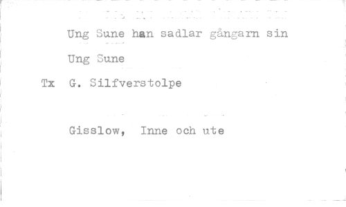 //// Ung Sune han sadlar gångam sin Ung Sune Tx G. Silfverstolpe //// Gisslow, Inne och ute