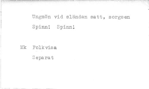 //// Ungmön vid sländan satt, sorgsen Spinni Spinni //// Mk Folkvisa Separat