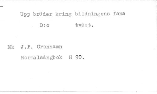 //// Upp bröder kring bildningens fana D:o tvåst. //// J.P. Cronhamn Norsalsångbok H 90.