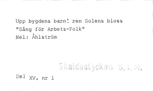 //// Upp bygdens barni ren Solens bloss "Sång för Arbets-Folk" //// Mel: Åhlström