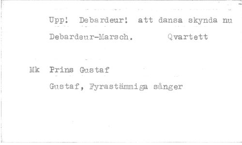 //// UppI Debardeur! att dansa skynda nu Debardeur-Marsch, Qvartett //// Mk Prins Gustaf //// Gustaf, Fyrastämmiga sånger