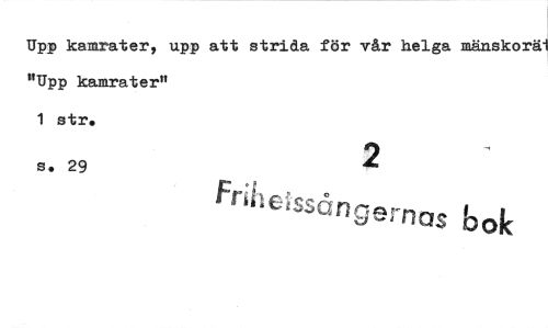 //// Upp kamrater, upp "Upp kamrater" //// 1 str. //// s. 29 //// att striåa för vår helga mänskorä*j //// '^cngernas bok
