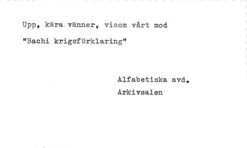 //// Upp, kära vänner, visom vårt mod "Bachi krigsförklaring" //// Alfabetiska avd. Arkivsalen