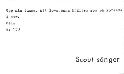 //// Upp min tunga, Att lovsjunga Hjälten som på korsets //// 4 str. mel. s. 158 //// Scouf sånger