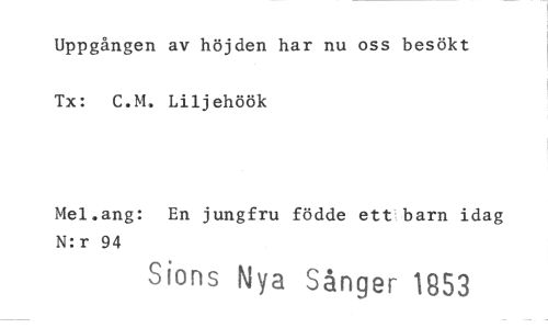 //// Uppgången av höjden har nu oss besökt Tx: C.M. Liljehöök //// Mel.ang: En jungfru födde ett barn idag N:r 94 //// Sions Nya Sånger 1853