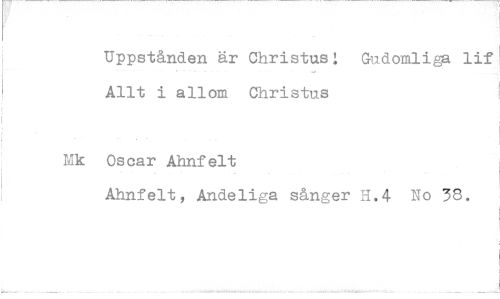 //// Uppstånden är Christusl Gudomliga lif Allt i allom Christus //// Oscar Ahnfelt //// Ahnfelt, Andeliga sånger H.4 No 38.