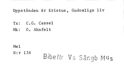//// Uppstånden är Kristus, Gudomliga liv //// Tx: C.G. Cassel Mk: 0. Ahnfelt //// Mel //// N:r 134 //// Bibe!fr Vs Sår.gb M^s
