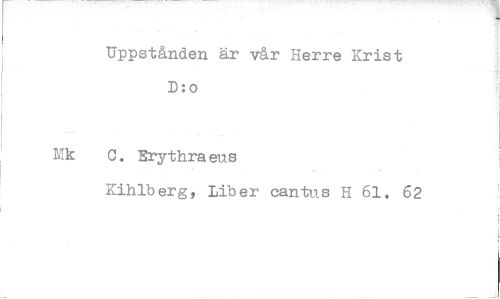 //// Uppstånden är vår Herre Krist D:o //// C. Erythra eus //// Kihlberg, Liber cantus H 61.