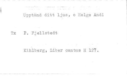 //// Upptänd ditt ljus, o Helge And //// P. Fjellstedt //// Kihlberg, Liber cantus H 127.