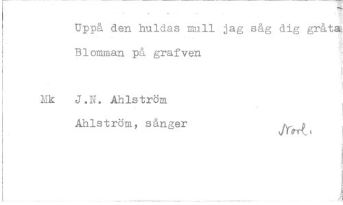 //// Uppå den huldas mull jag såg dig gråtaa //// Blomman på grafven //// J.N. Ahlström Ahlström, sånger