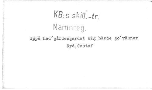 //// KB.s sMt.-tr. //// Namnreg. //// Uppå had'gårde sgärde t sig hände go'vänner Ryd,Gustaf