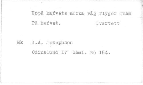 //// Uppå hafvets mörka våg flyger fram //// På hafvet. Qvartett //// J.A, Josephson //// Odinslund IV Sami. No 164.