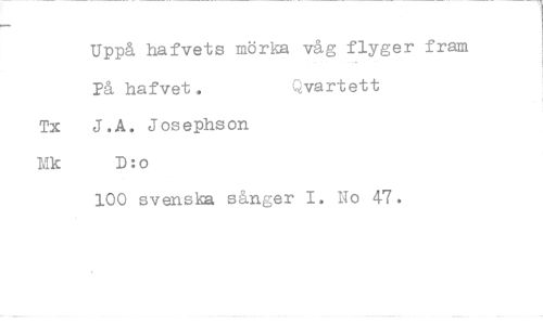 //// Uppå hafvets mörka våg flyger fram //// På hafvet. Qvartett //// Tx J.A. Josephson Lik D:o //// 100 svenska sånger I. No 47.