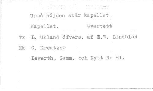 //// Uppå höjden står kapellet Kapellet. Qvartett //// Tx L. Uhland öfvers. af 3.W. Lindblad Mk C. Kreutzer //// Lewerth, Gamm, och Nytt No 81.