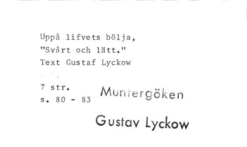 //// Uppå lifvets bölja, "Svårt och lätt." Text Gustaf Lyckow //// 7 str. Mun i erqöken //// s. 80 - 83 //// Gustav Lyckow
