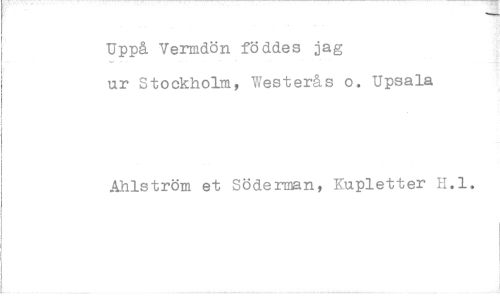 //// Uppå Vermdön föddes jag ur Stockholm, Westerås o. Upsala //// Ahlström et Söderman, Kupletter H.l.
