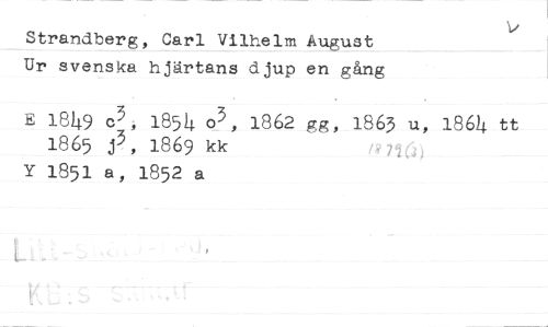 //// Strandberg, Carl Vilhelm August Ur svenska hjärtans djup en gång //// E 1849 c^, 1854 o^, 1862 gg, 1863 u, 1864 tt //// 1865 1869 kk Y 1851 a, 1852 a