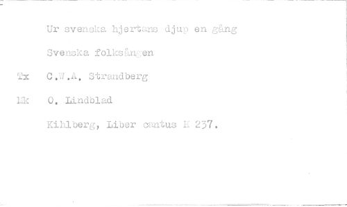 //// Ur svensks, hjertaas djup en gång Svenska folks An;.en i'x C.W.Ä. Strandberg Hk 0. Lindblad //// Kihlberg, Liber cantus E 237.